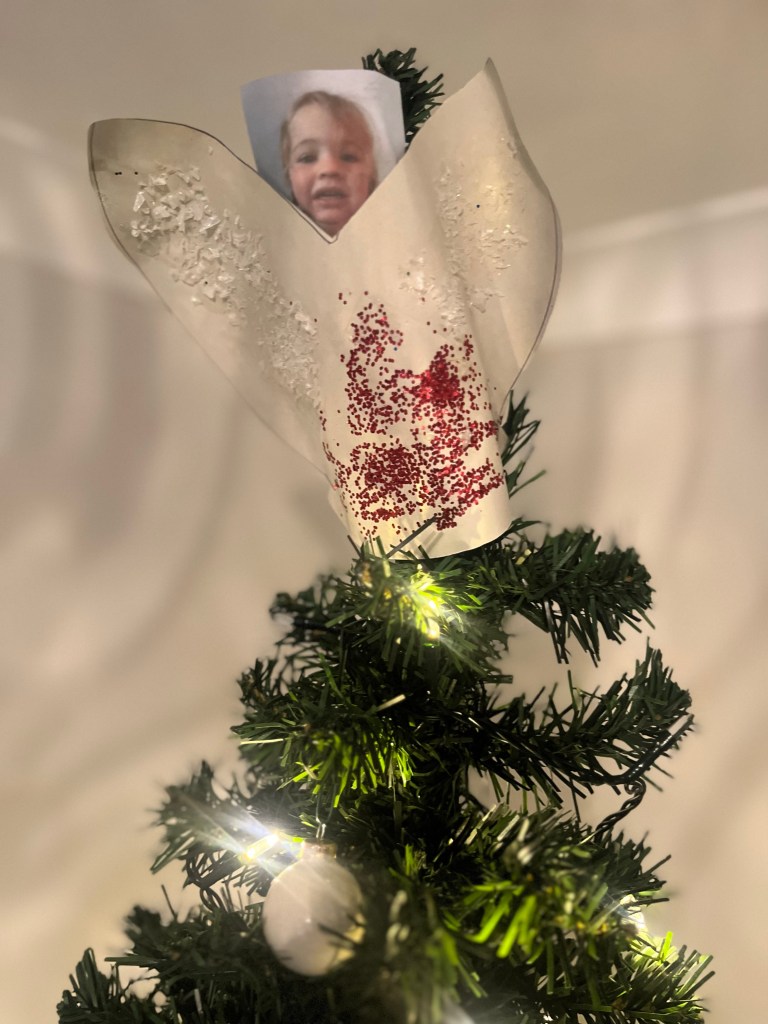 My tree is an embarrassment in the world of Christmas trees. Every year I look at other Christmas trees and think, wow, mine is rubbish! It’s a cheap fake one. There’s no theme or colour scheme. I’ve got hand-made decs made at nursery by my eldest (or possibly someone else’s eldest, I’m not sure how accurate the labelling process is after each little artist has finished their masterpiece!); I’ve got koala bear in Santa hat baubles from our relatives in Oz; and a weird donkey/zebra I found in TK Max one Christmas Eve and bought because I worried he’d be left alone on Christmas Day if I didn’t buy him. These are thrown on, mostly clustered around the bottom, because I let my kids decorate the tree. Yes, I let them decorate my tree! (Cue gasp!)