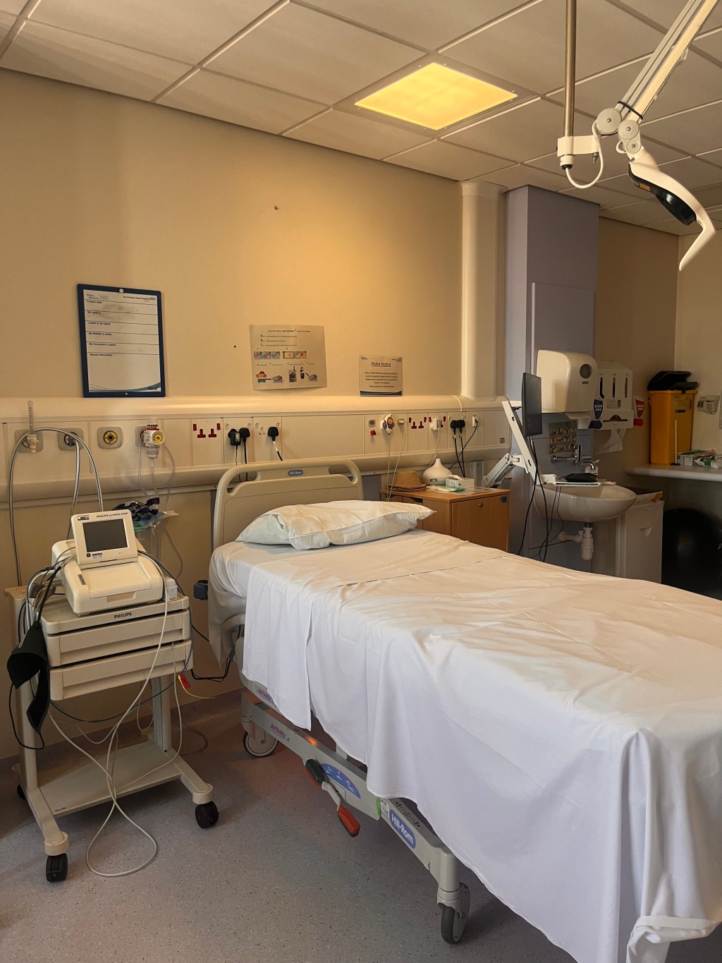 7. Scan the room for scary looking stuff. Honestly, some of the equipment in labour ward rooms looks terrifying. You see it and instantly think ‘danger’. Birth centres are designed with your birth hormones in mind and so much of this equipment is hidden in cupboards and brought out if needed. At a home with this stuff stays in the midwife’s bag. But labour ward rooms are not designed with birthing mums hormones in mind! (I don’t know why – it does seem fairly ridiculous to me!) and so this scary stuff just sits there right in your eye-line, messing with your hormones and ironically, making you more likely to need the scary looking equipment! If I were a birth partner walking into the labour ward, I would scan the room and ask the staff what can be moved or covered up with sheets!